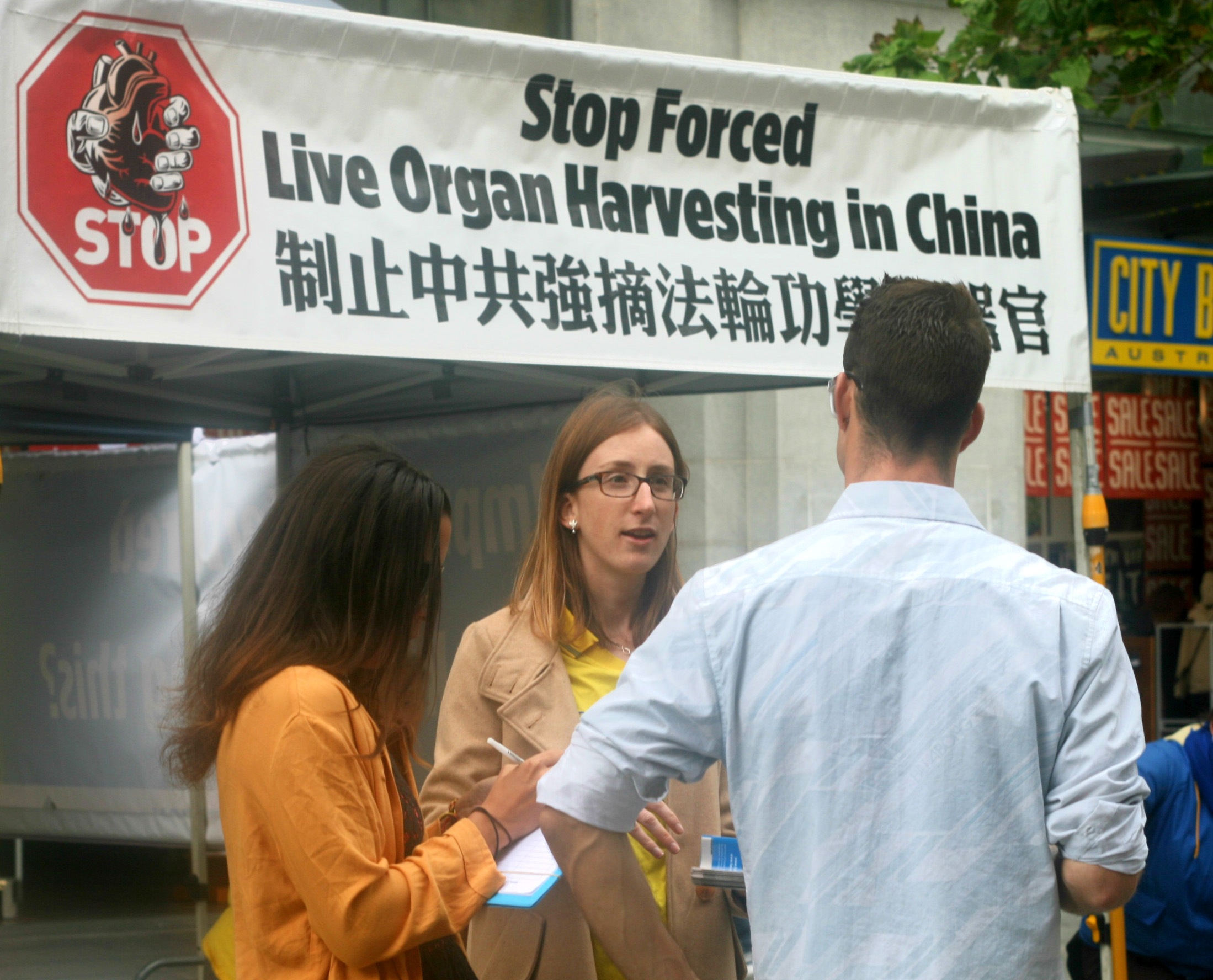 图2-5:许多过往民众驻足了解真相,并签名支持制止中共活摘法轮功学员器官的罪恶。