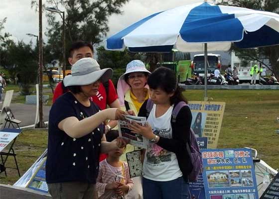 六月十九日,台湾花莲部份法轮功学员在七星潭海边集体炼功,向中国大陆游客讲真相、劝退党,并声援全球起诉江泽民的大潮。