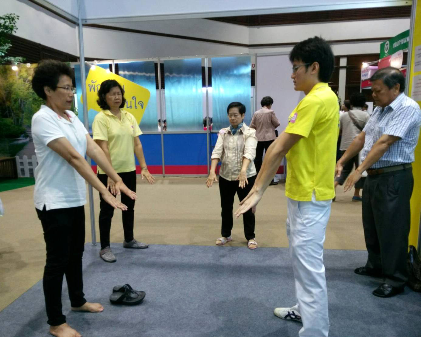 ![]() 图4-5:二零一六年泰国健康博览会上,法轮功学员演示五套功法。 |