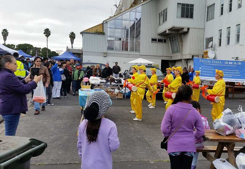 法轮功学员在奥克兰西区艾文戴尔(Avondale)马场进行腰鼓队表演