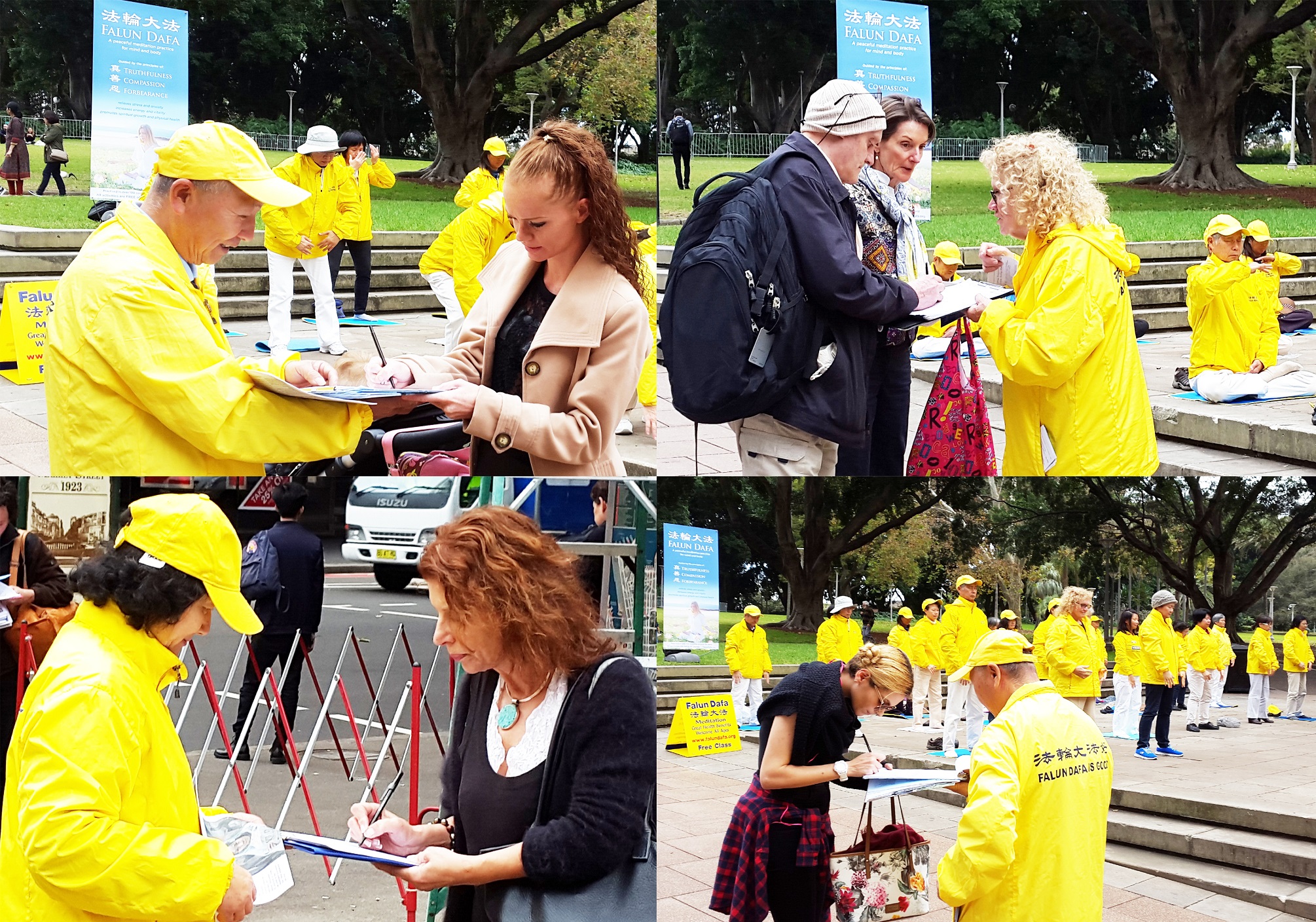 几周来,活动吸引了大批周围民众,他们喜欢驻足欣赏和感受法轮功学员炼功、打坐时强大、纯正的能量场。有的来询问如何修炼法轮功;有的主动过来签名反迫害;有的还表示:更多善良、正义之举聚在一起,将很快把邪恶灭掉。我和我的朋友们都在关注、支持你们!