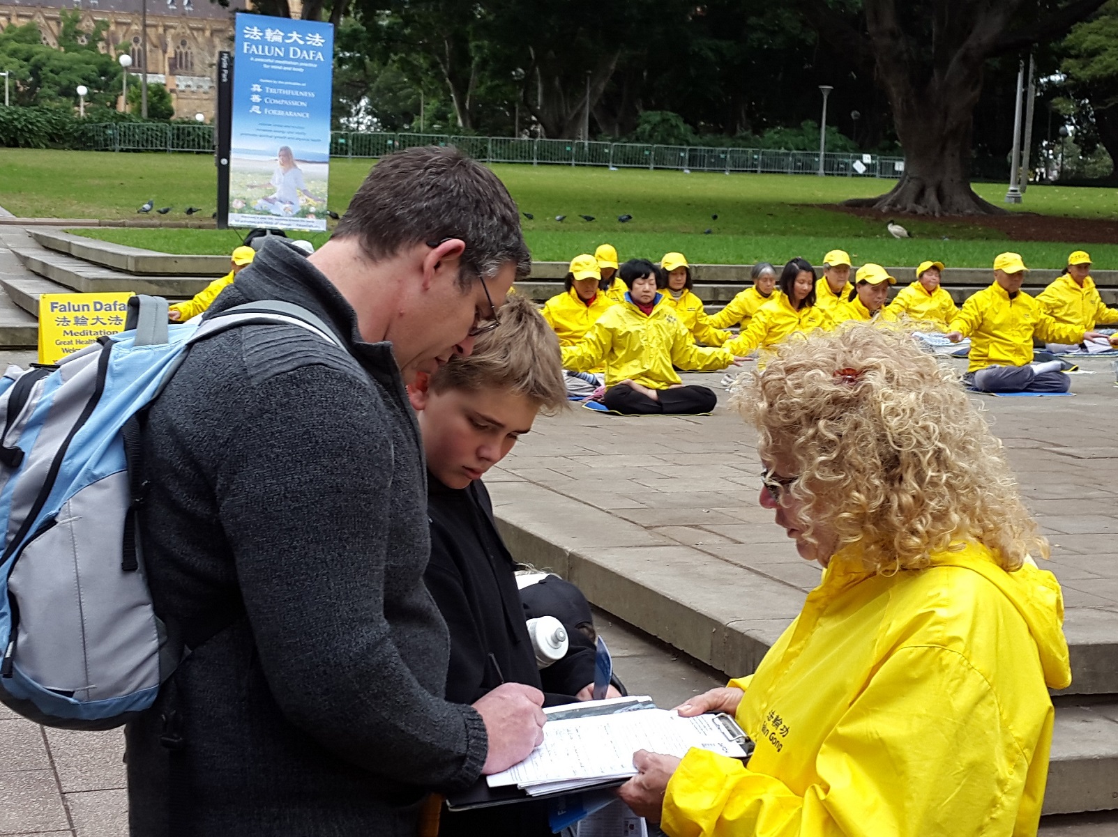 安德鲁(Andrew Helier)带着几个孩子路过,看到揭露活摘器官等横幅,他赶紧走过来询问。听闻更多事实案例时,他被震惊了:“我很难过,我本来只知道法轮功被中国政府迫害,但是今天才知道他们的器官还被活摘,真是太令我震惊了,骇人听闻!这是不应该发生的事!我阿姨曾经移植器官给她的丈夫,我目睹她在整个过程中所经历承受的巨大痛苦,真是难以想象在中国的法轮功学员是如何承受被‘活摘器官’时的种种痛苦?希望有人能真正做点实事来赶紧制止迫害。我会让更多朋友知道去签名制止迫害。”