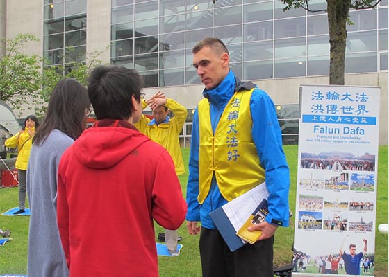 一年一度苏格兰格拉斯哥最大的艺术节上,法轮功学员的祥和的打坐和他们的展位,吸引了众多苏格兰人的目光。