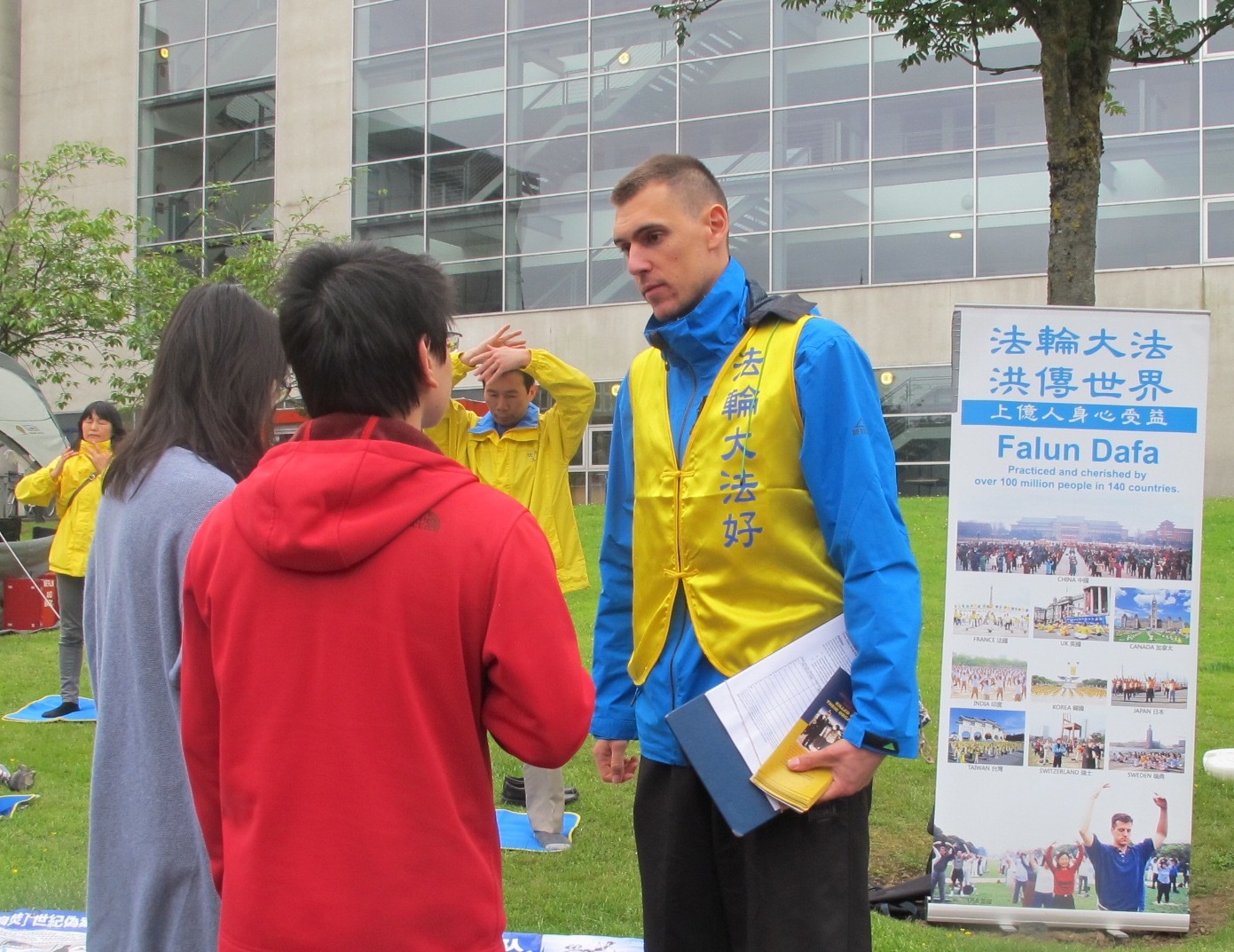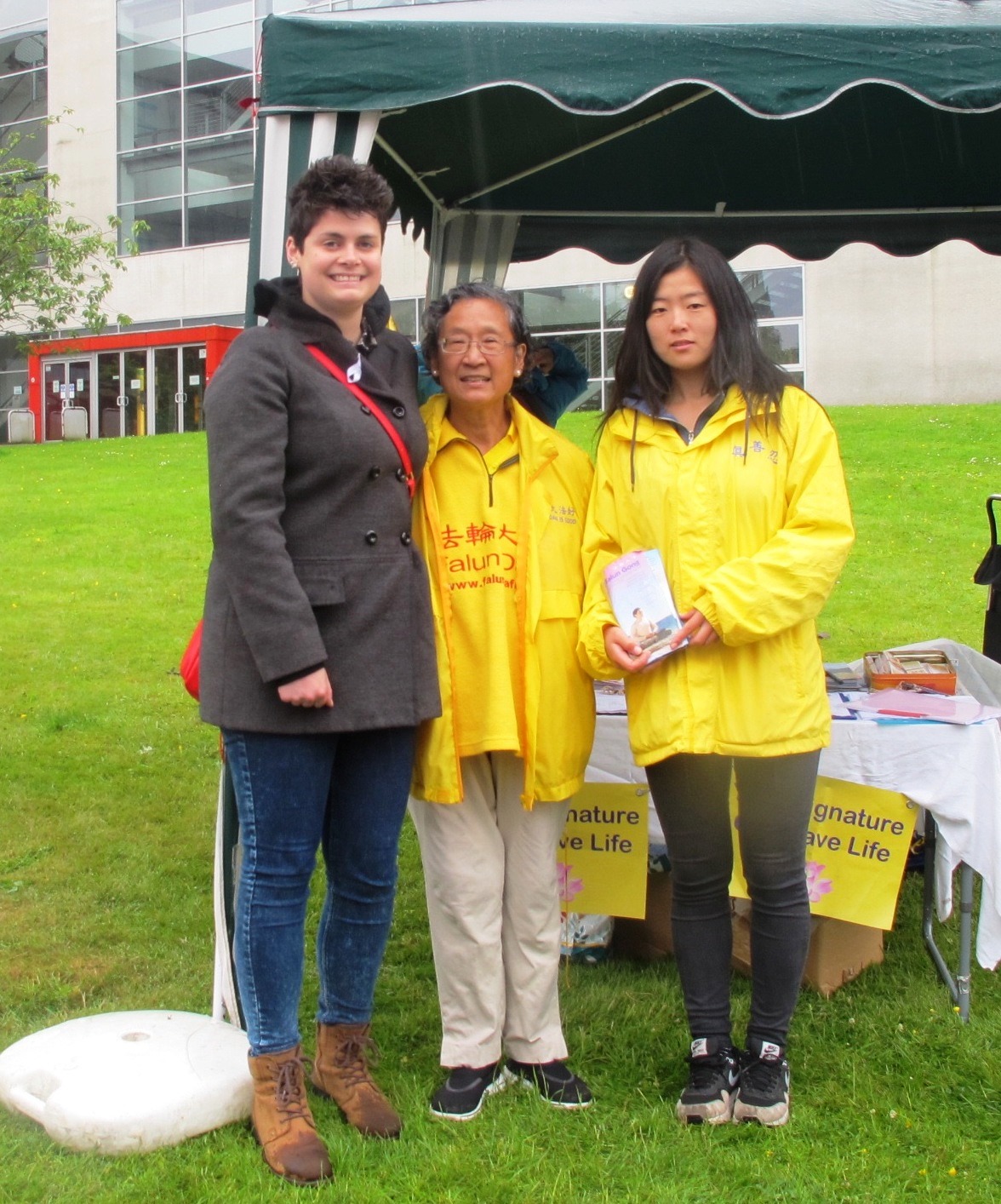 周日,在爱丁堡工作的Soper女士特意赶到格拉斯哥参加艺术节。她再次来到法轮功展位前表示支持。