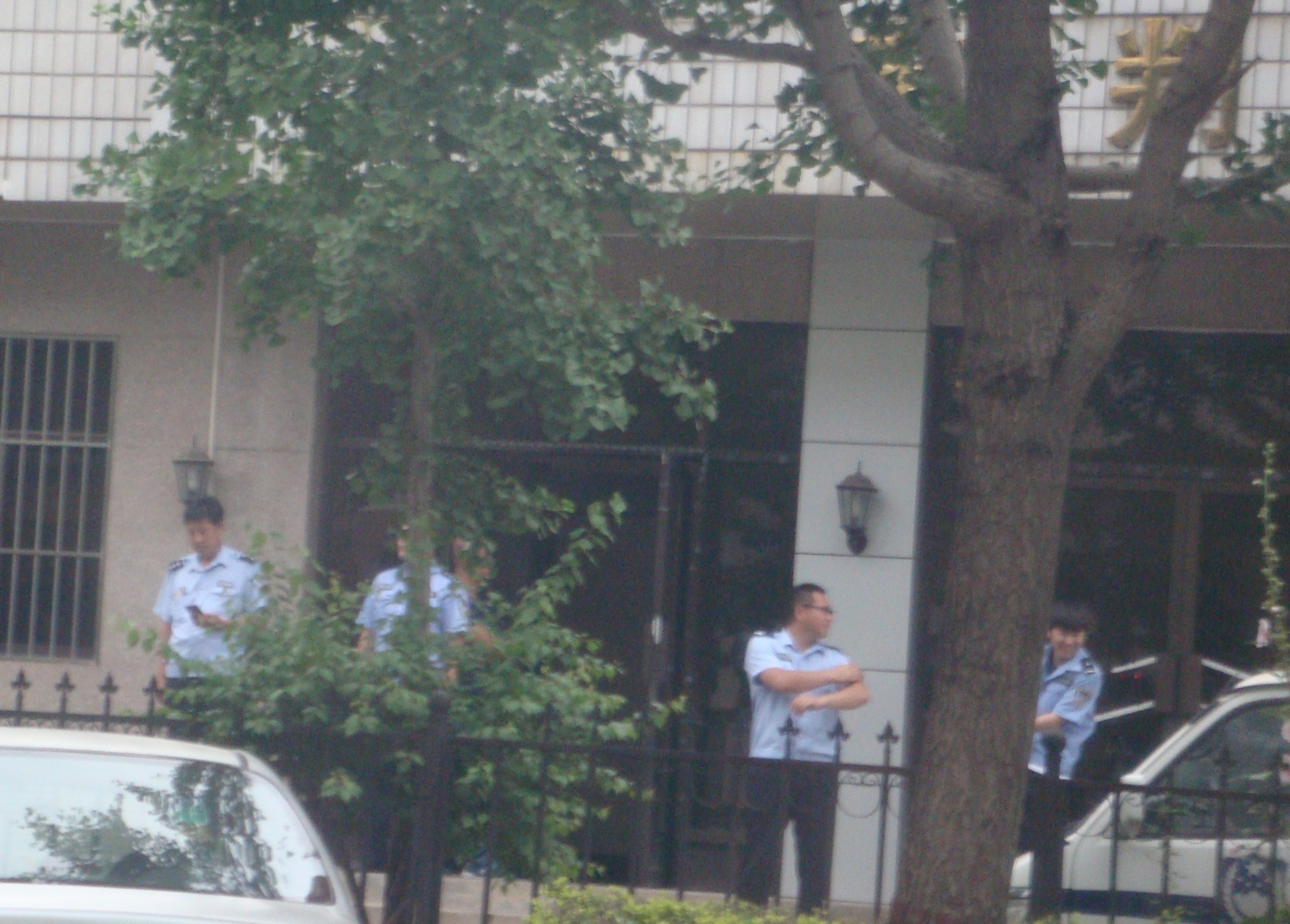审判庭外,包括两辆面包警车在内共七、八辆警车,坐满了国保、610等便衣人员。
