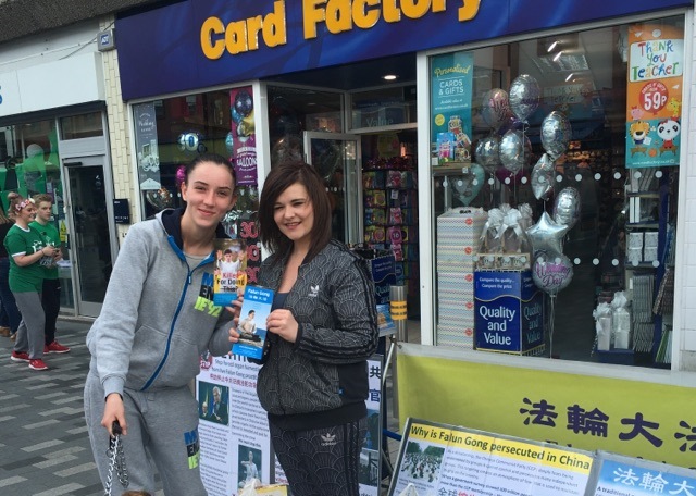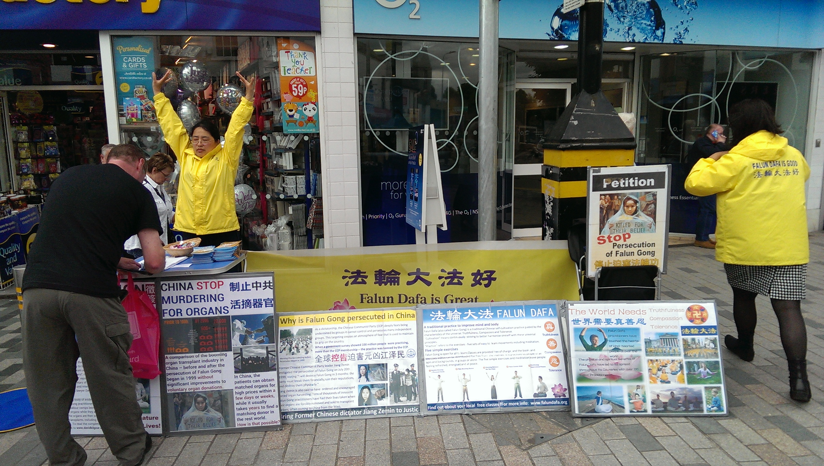 【明慧网二零一六年六月二十三日】二零一六年六月二十一日下午,北爱尔兰法轮功学员在北爱第三大城市利斯本(Lisburn)举行反迫害征签活动,揭露中共活摘法轮功学员人体器官谋取暴利,呼吁国际社会强烈谴责中共活体摘取法轮功学员人体器官的恶劣行径,立刻采取行动制止迫害。