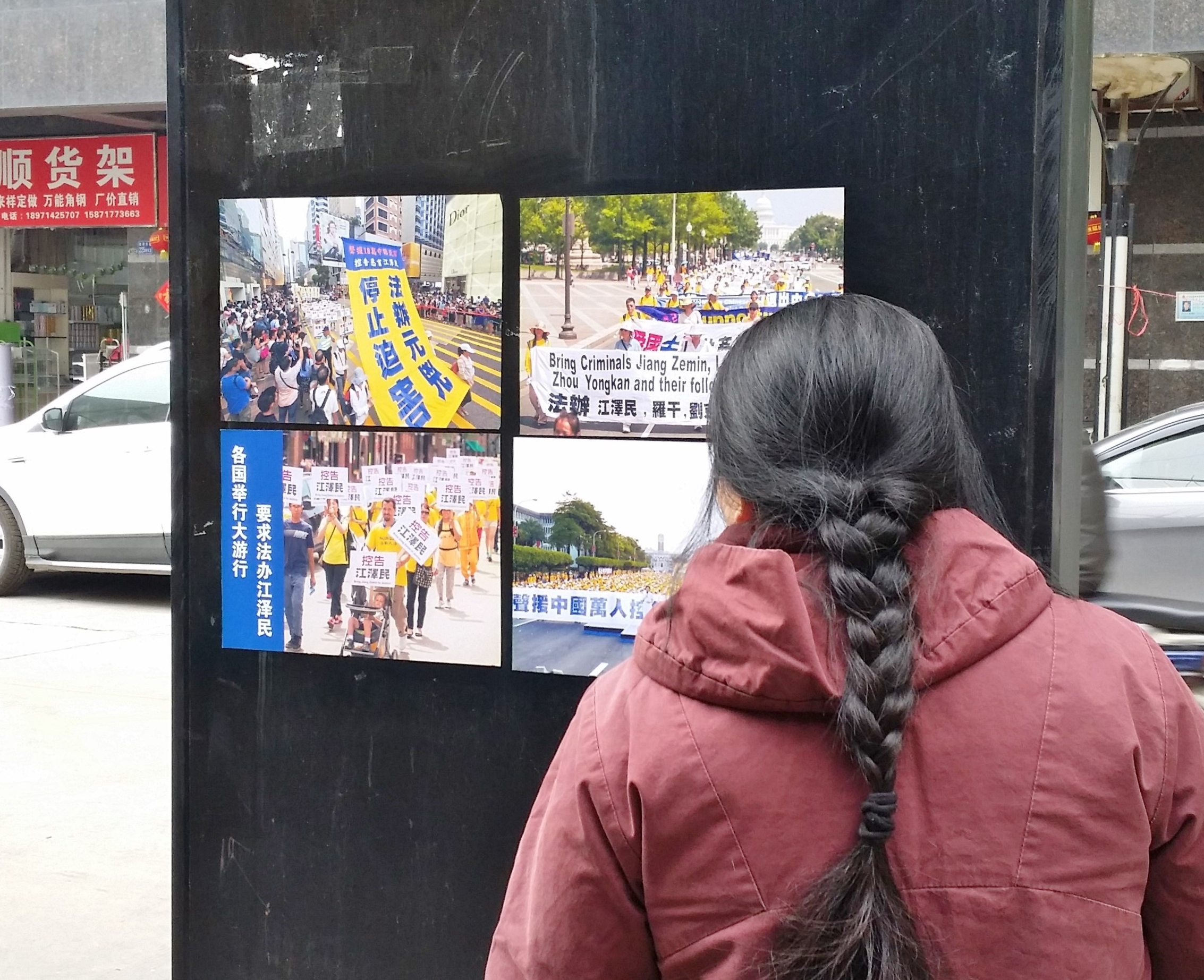 通过跟法轮功学员交谈,这位女士打开了自己对法轮功真相有疑问的心结,她说:“原来共产党不光是在中国,它的覆盖面很大,而且是在全世界范围内都在干坏事,原来我没想过这个问题。”她很高兴能有机会跟法轮功学员交谈,感觉到“有启发”,表示自己要回去好好思考。
