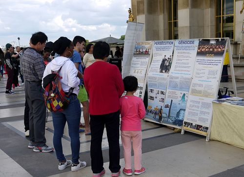 ![]() 图4:许多游客认真阅读真相展板,并与法轮功学员攀谈,进一步了解法轮功。 |