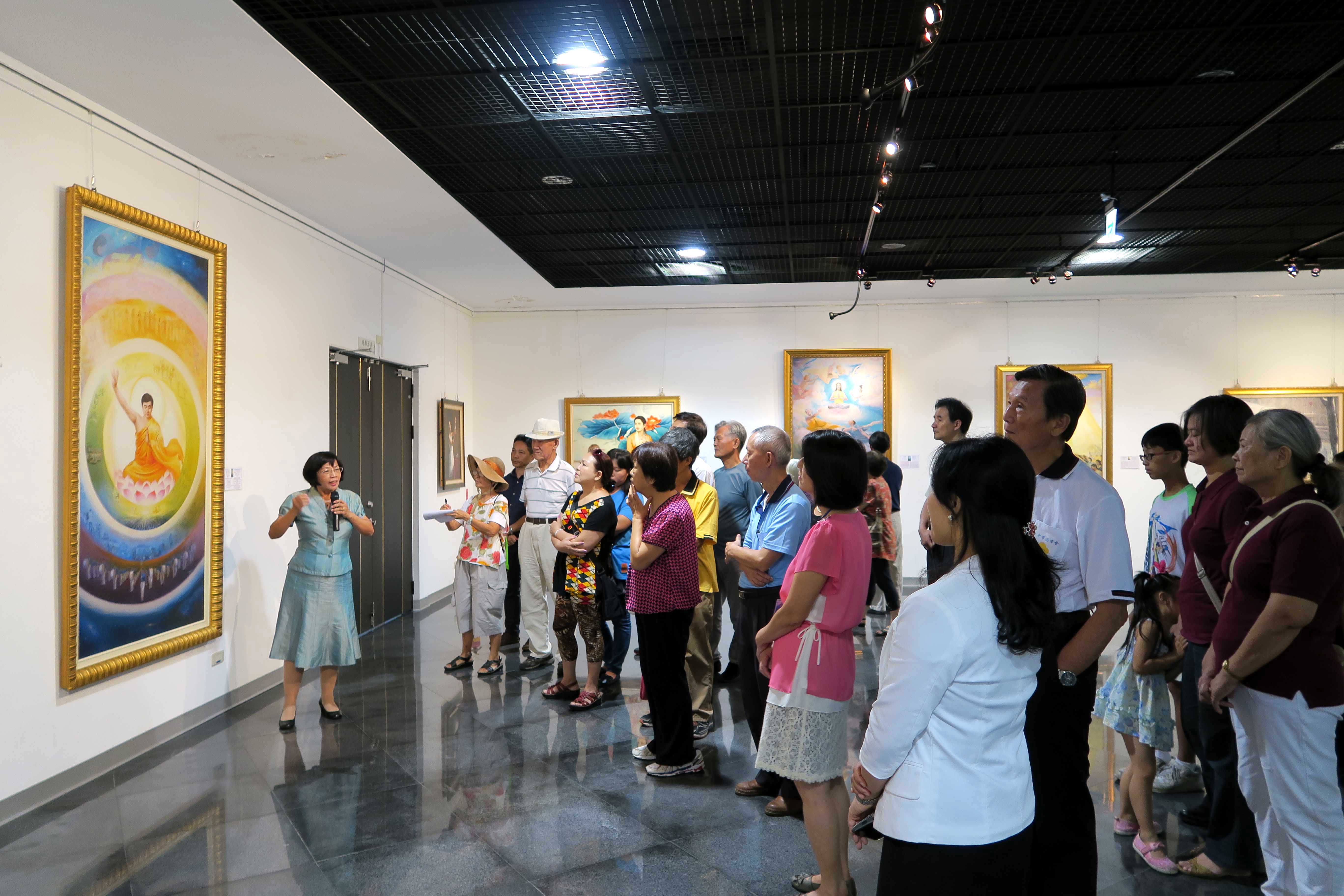 民众专注的聆听导览员谢春华老师解说画作。