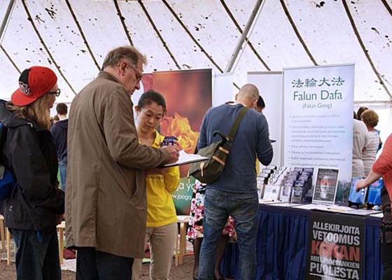 在芬兰世界村文化节介绍法轮功 揭露中共暴行(图)