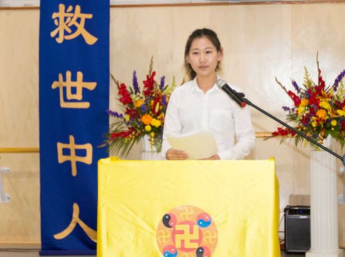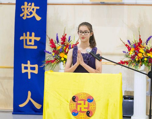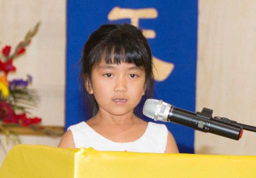 今年十二岁Katherine Xiao表示,她经常参加大法活动。她的妈妈告诉她,大法弟子一定要听师父的话做“三件事”。