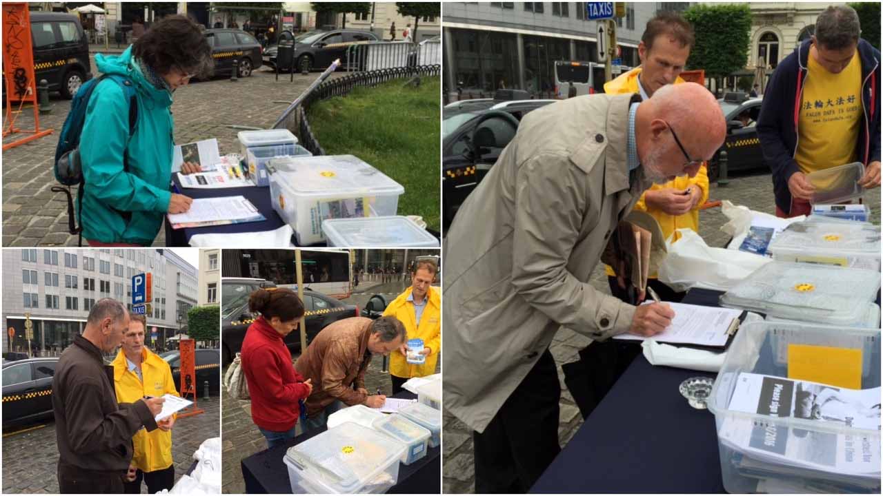 ![]() 布鲁塞尔欧洲议会大楼前,人们纷纷签名支持法轮功反迫害 |
