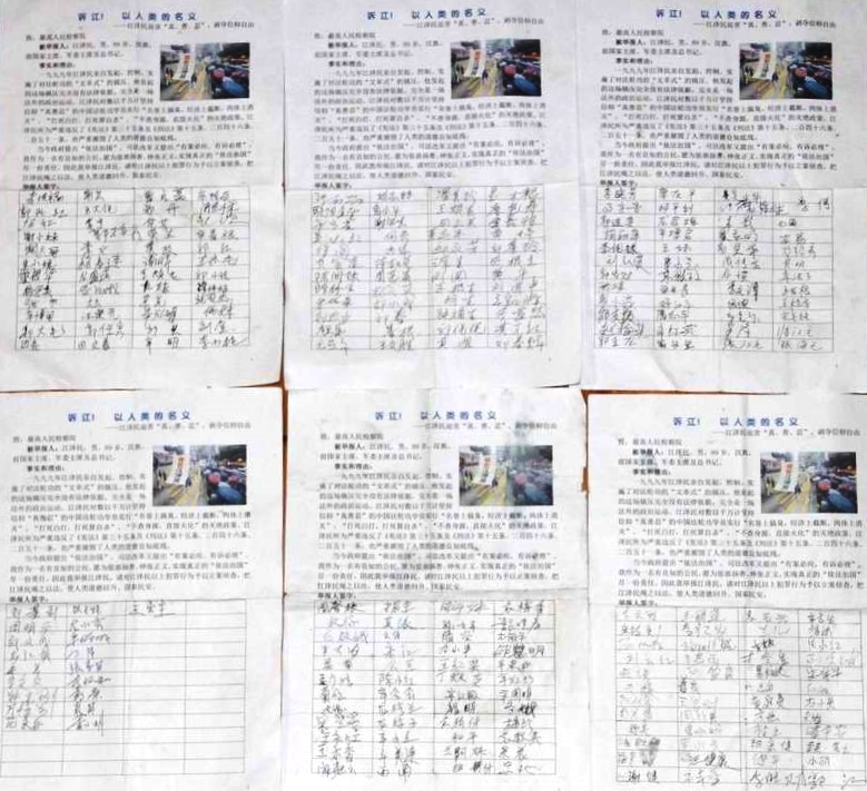 一位卖菜的摊主边签名边说:“江泽民没干什么好事,要签就签真名。”旁边一位卖肉的摊主接过征签表,也跟着签下了自己的真名。
