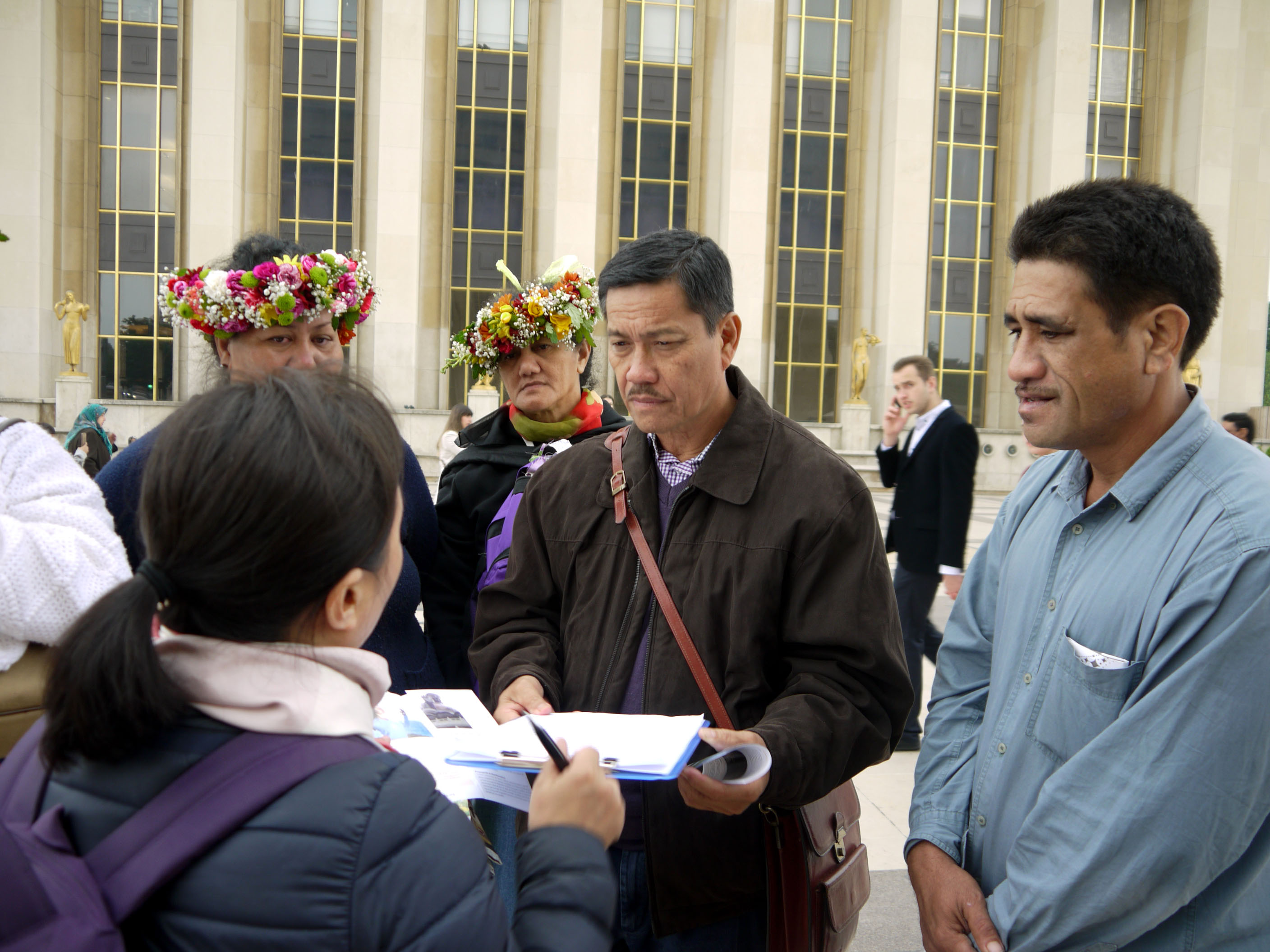 ![]() 图4:来自南太平洋中部法属波利尼西亚群岛的一名市长(中)听闻法轮功真相并在反迫害征签表上签字 |