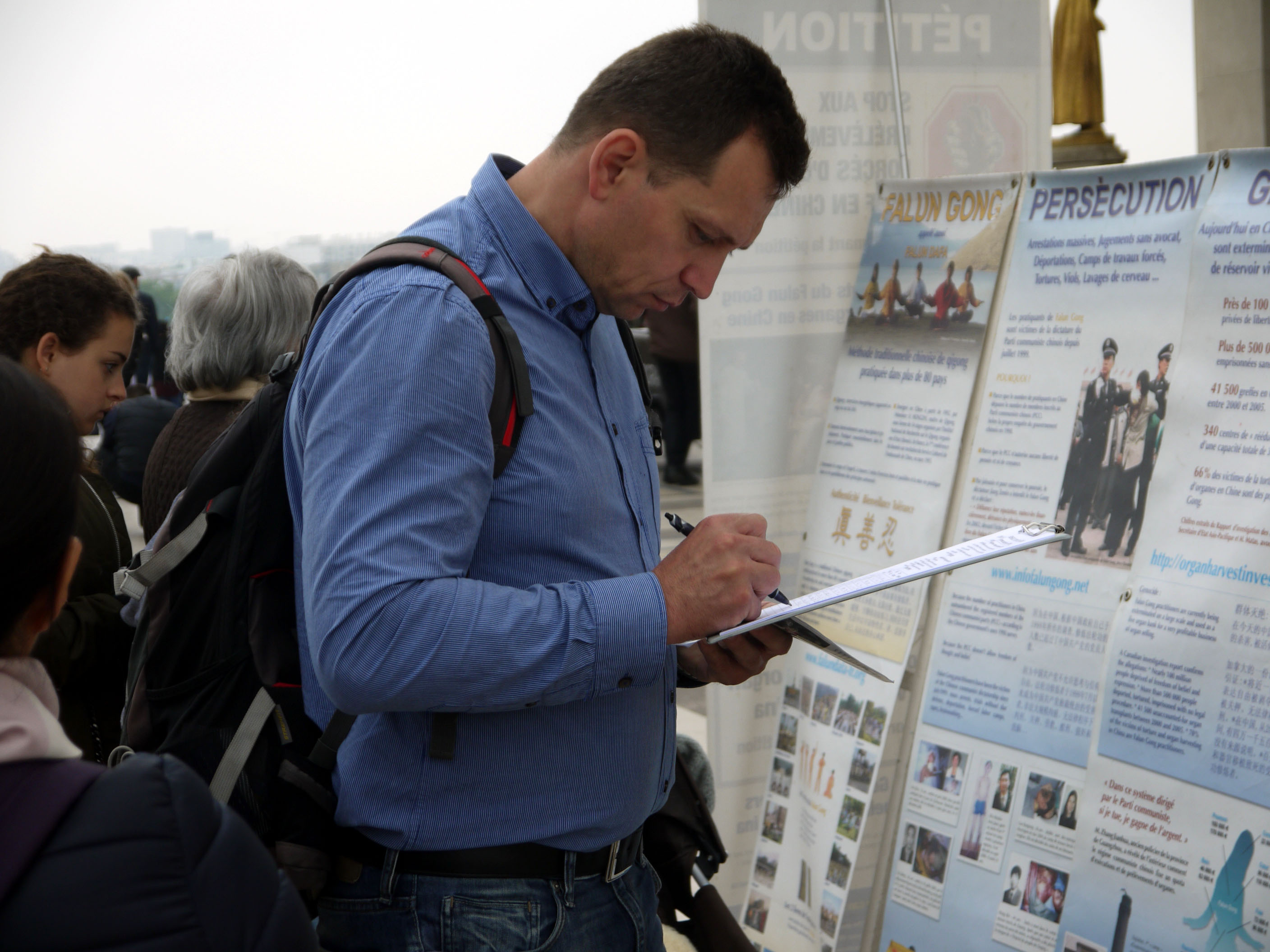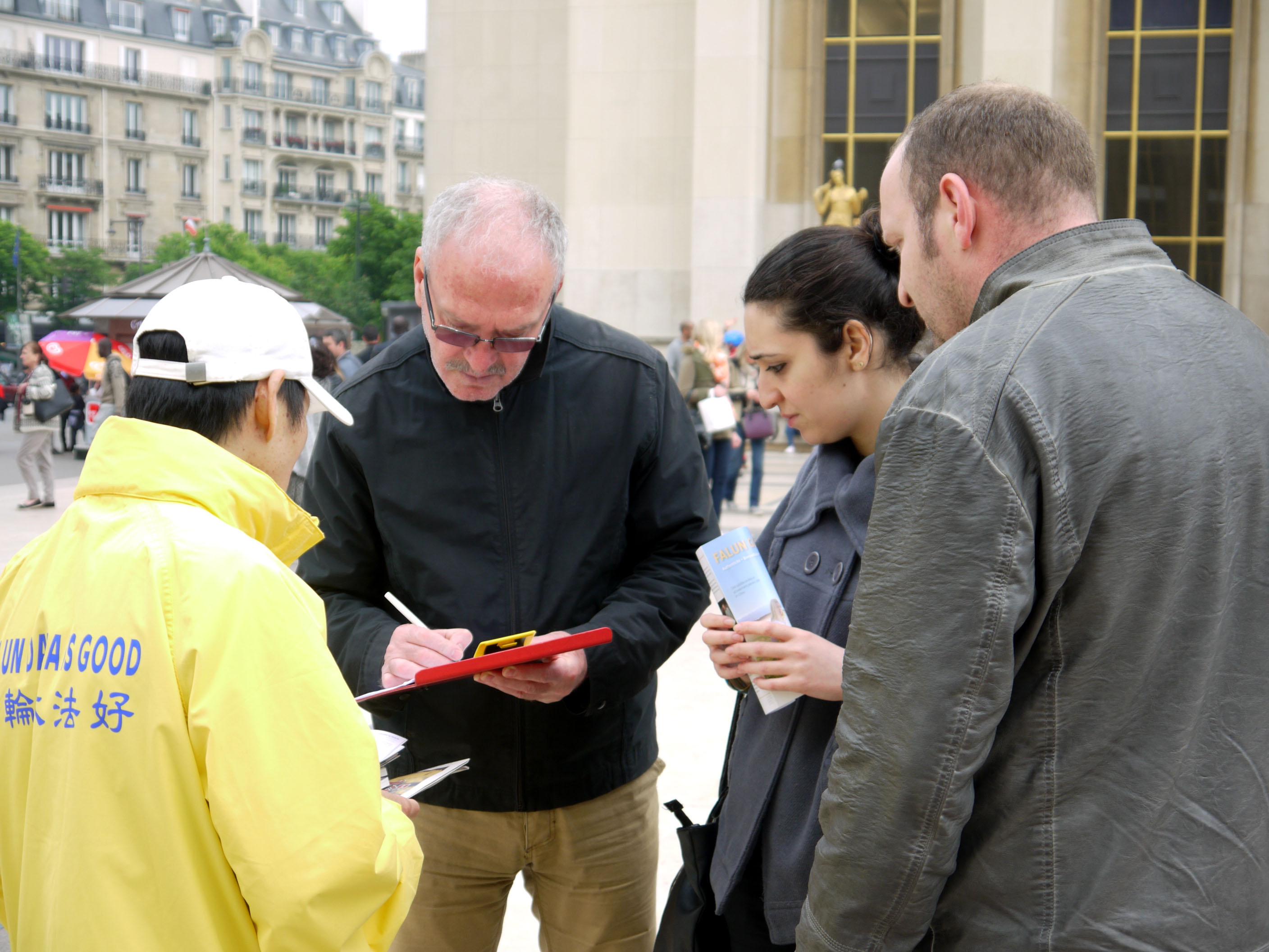 Dalichampd先生是巴黎能源持久发展机构的顾问。他说:“我认为迫害是不可接受的,在法国,基本人权得到尊重。而在一些国家,还很难拥有这样自由的权利,思想自由,信仰自由。我签字是为了那些还没有获得人权的国家能获得最基本的人权。人们的思想要改变,政府要为人民的人权自由而为,接受人们的信仰自由。”