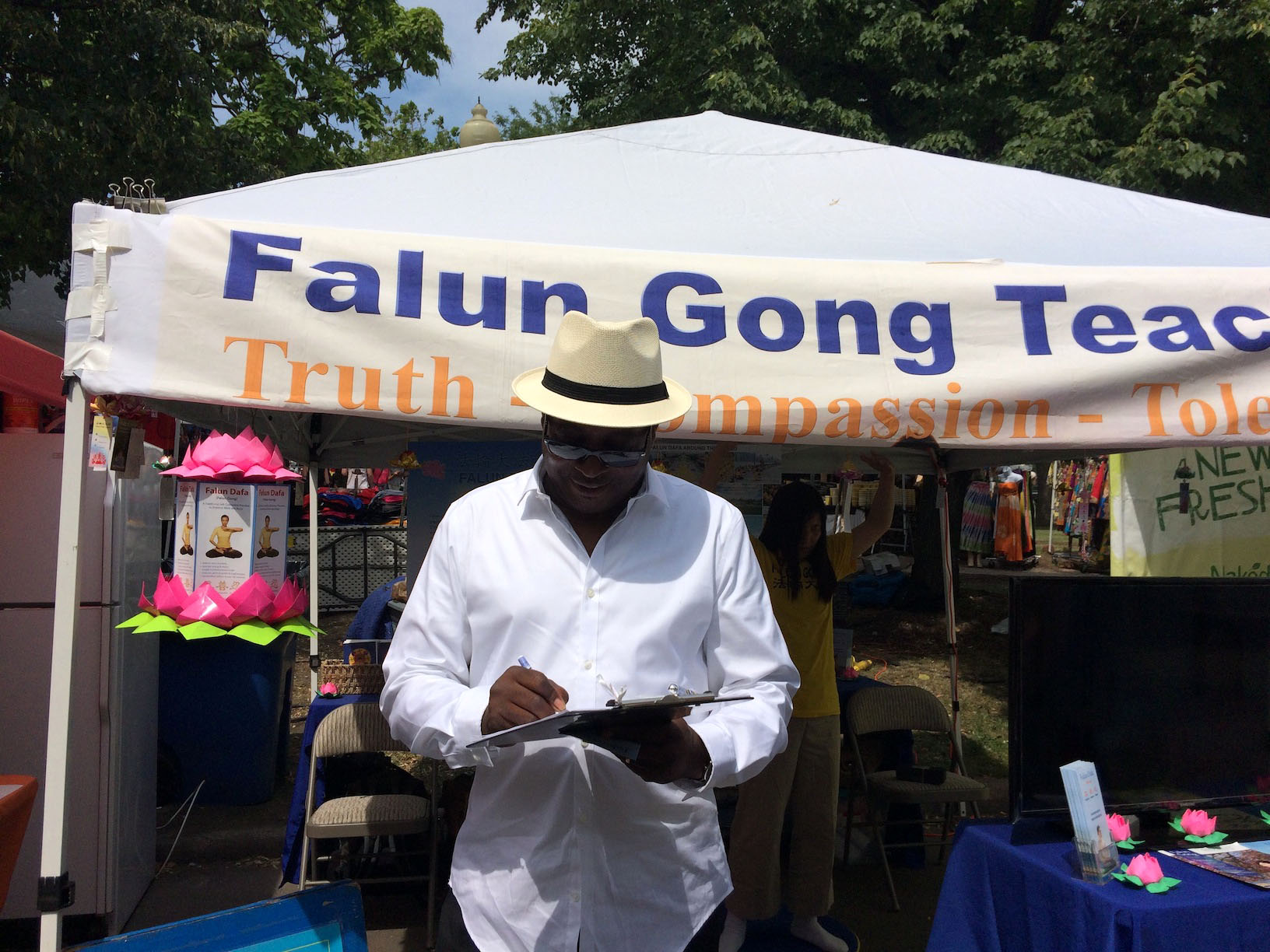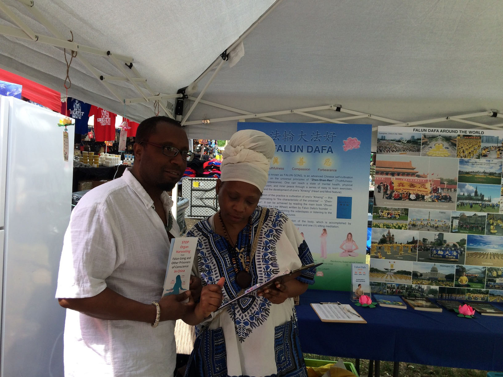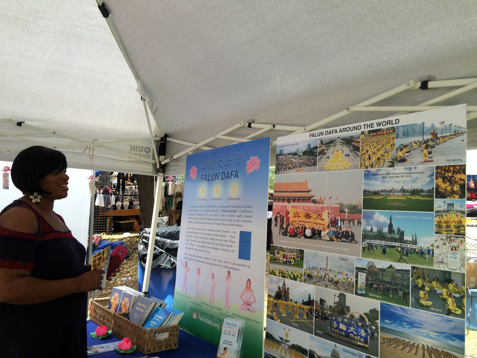 那几天艳阳高照,法轮功学员精心布置的展位如闹市中的一片净土,悠扬轻缓的炼功音乐吸引不少人驻足 。四天活动期间,有八十多人留下联系方式,表示希望参加法轮功的九天学习班;也有很多人了解法轮功在中国被迫害的真相,并在声援国内控告迫害法轮功的首恶江泽民的征签表上留下签名。
