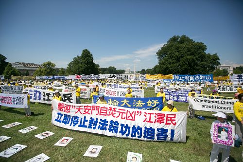二零一六年七月十四日中午,来自美国各地的部分法轮功学员及支持者在美国首都华盛顿国会山西草坪集会,呼吁国际社会制止中共对法轮功长达十七年的残酷迫害。十九位美国国会议员来到现场或致函声援这场集会,承诺和法轮功学员一同制止中共迫害。华府多个非政府组织代表在集会上呼吁共同制止中共强摘法轮功学员器官。
