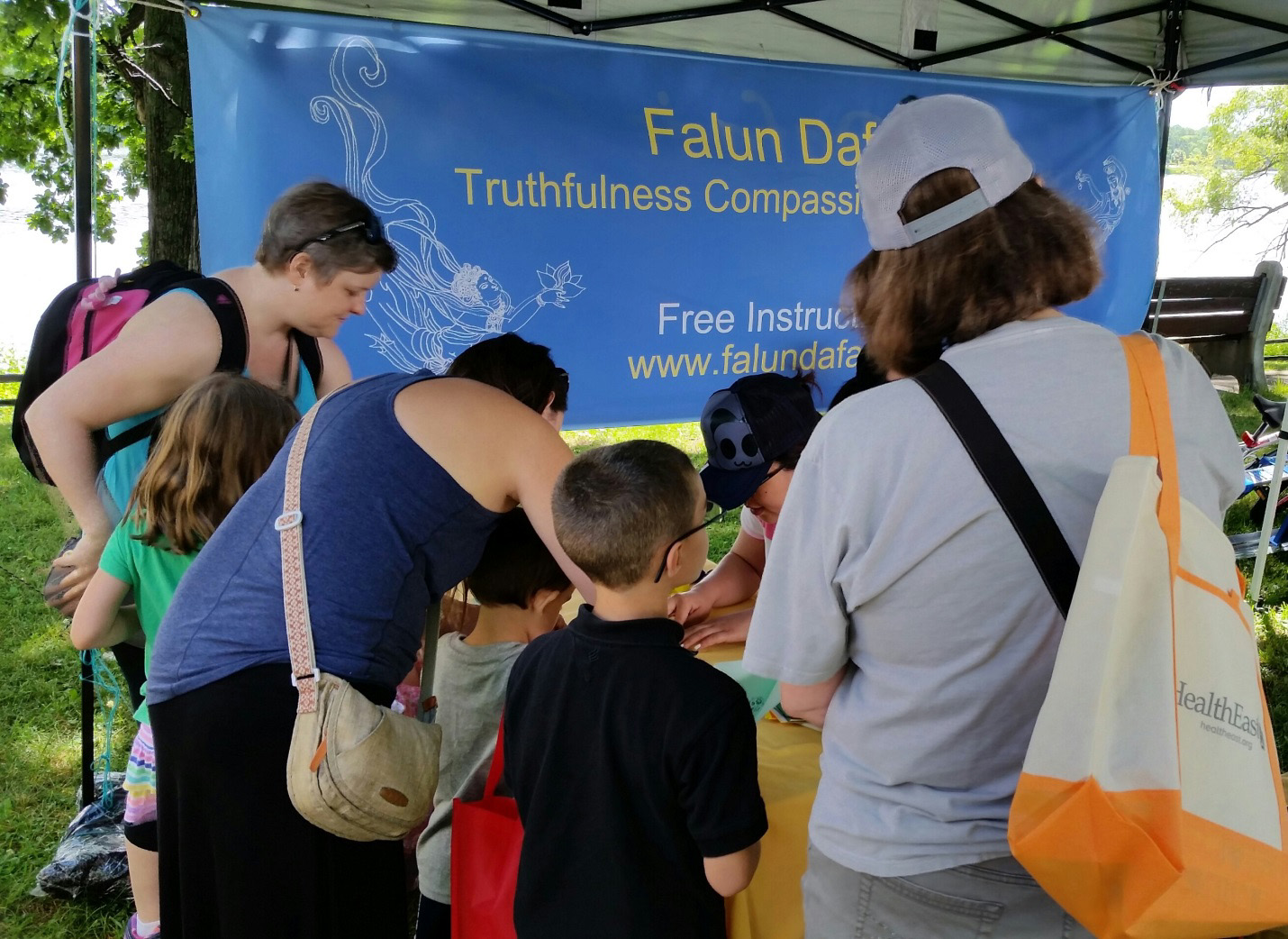 在活动现场的真相展位上,法轮功学员们的热情与善良吸引着往来的民众,大家纷纷驻足,和法轮功学员交谈,了解这个来自中国,根植于传统中国文化的打坐修行功法。中共对遵循“真、善、忍”理念的法轮功修炼者的残酷迫害,让听闻的人非常震惊。尤其是活摘器官的罪行,更是超越人类道德良知的底线,听者或摇头,或叹息,纷纷在反对活摘器官的表格上签下自己的名字。一位在私人诊所工作并从事教学的医生签字后表示自己想帮助做一些传播法轮功被迫害消息的事情,她想在她教学的学校做一些努力。