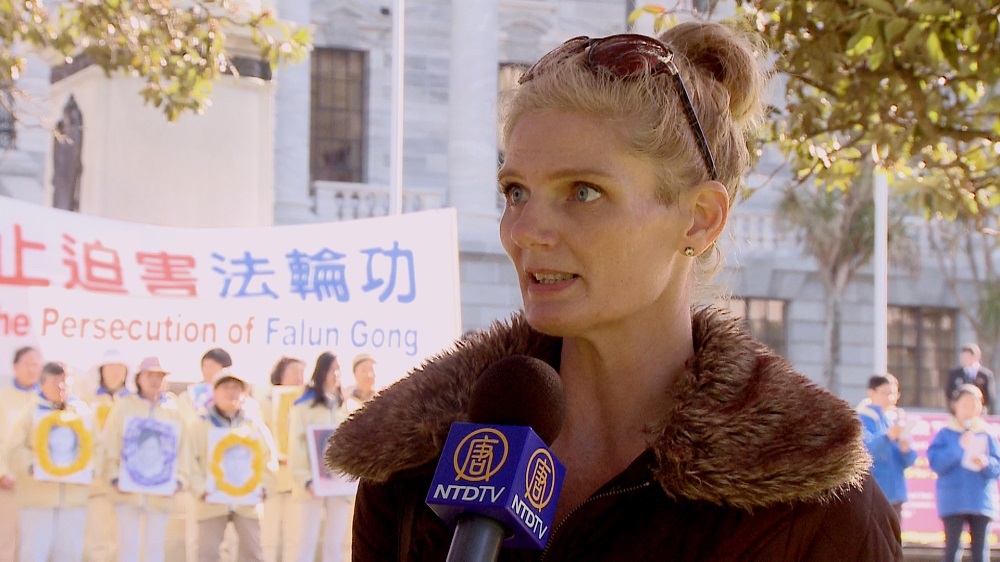 瑞内(Renee)女士谈到以前曾听说过法轮功的事。她说:“为了让更多人知道法轮功学员被非法盗取器官的事情,我曾经做过绝食。我非常支持法轮功。非法盗取器官将成为在本世纪最大的犯罪之一。新西兰政府应该向中国施压,让迫害立即停止。与关心贸易相比,我们应该更多的关心人。将来,当人们回顾历史的时候,如果我们的政府不出手相帮的话,将是站在错误的一方。”