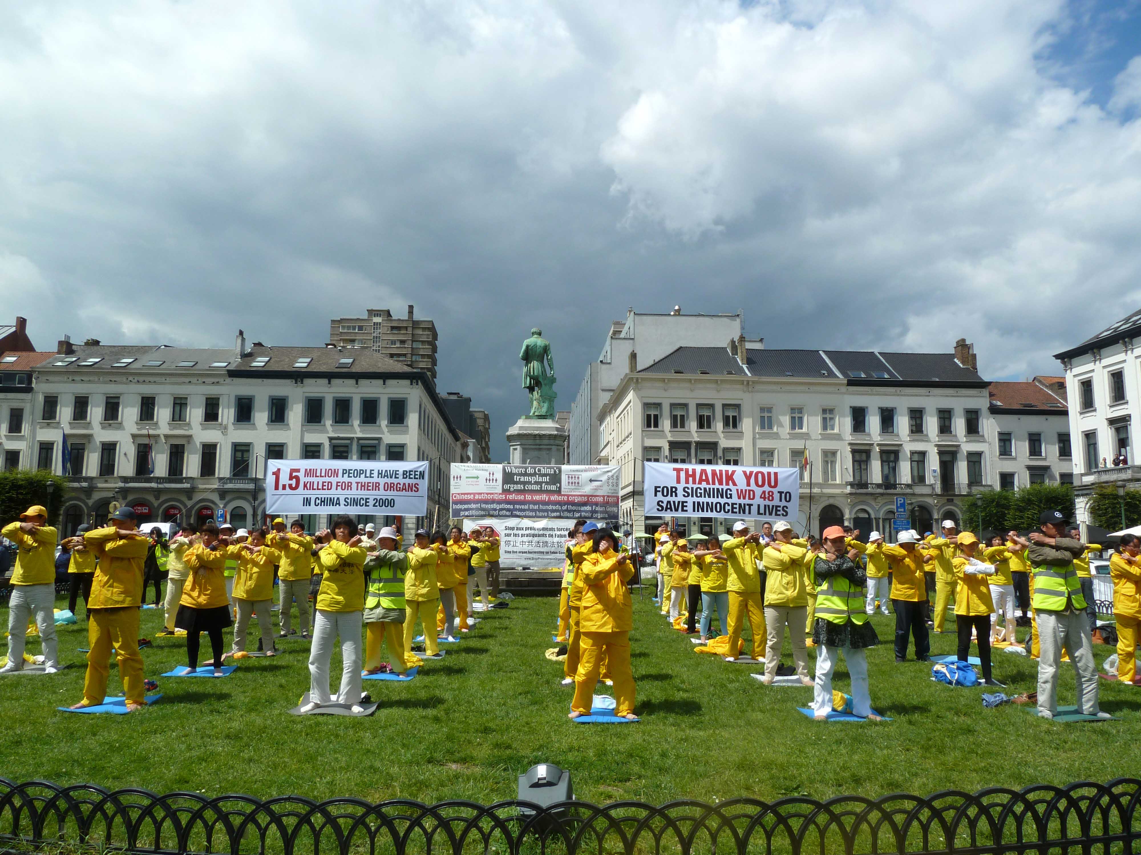 一位印度裔老者阿里被正在集体炼功的法轮功学员所吸引,驻足向法轮功学员问了几个问题,其中提到比起新近在法国发生的恐怖袭击和叙利亚问题来说,中国的情形还不是很糟糕,法轮功学员给他解释中共的大规模活摘器官,是地地道道的国家恐怖主义,是群体灭绝罪,听到这里,老人立即表示要签名反对中共群体灭绝的野蛮行径。