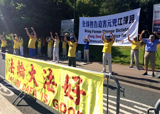 比利时法轮功学员在布鲁塞尔中共驻欧洲办事处前集会,抗议中共持续十七年针对法轮功的残酷迫害,要求法办元凶江泽民,制止迫害。