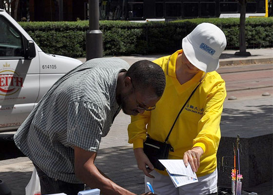 亚特兰大法轮功学员们来到市中心的百年奥林匹克纪念公园旁,向各界人士讲述中共迫害法轮功、大规模活体摘取法轮功学员器官的真相。