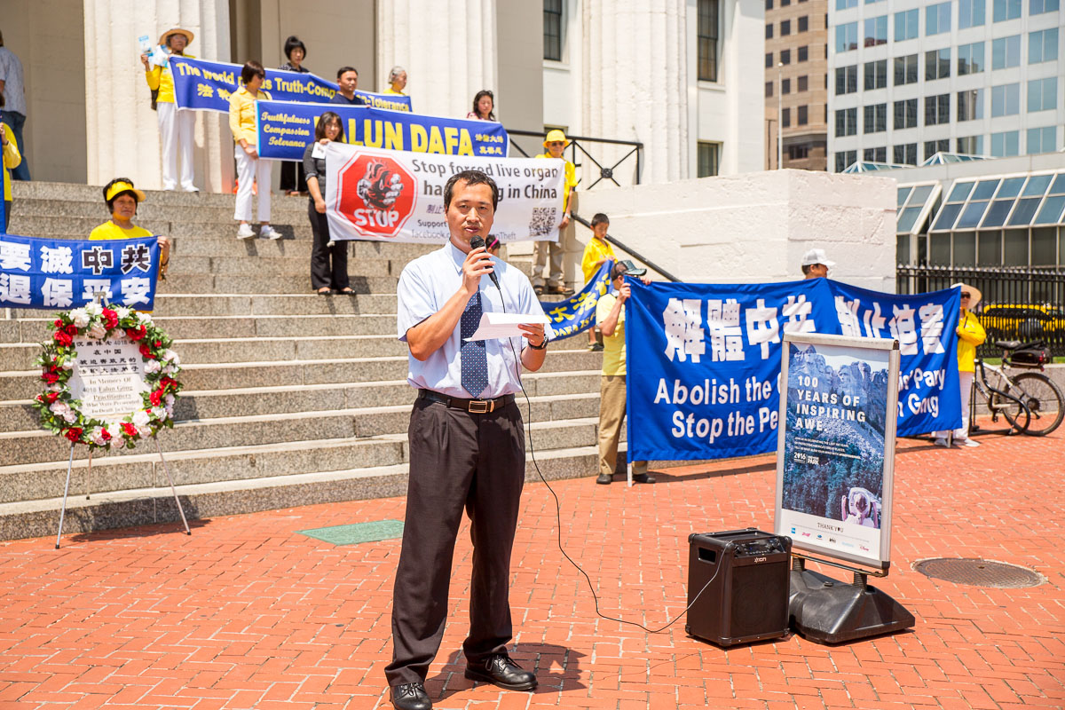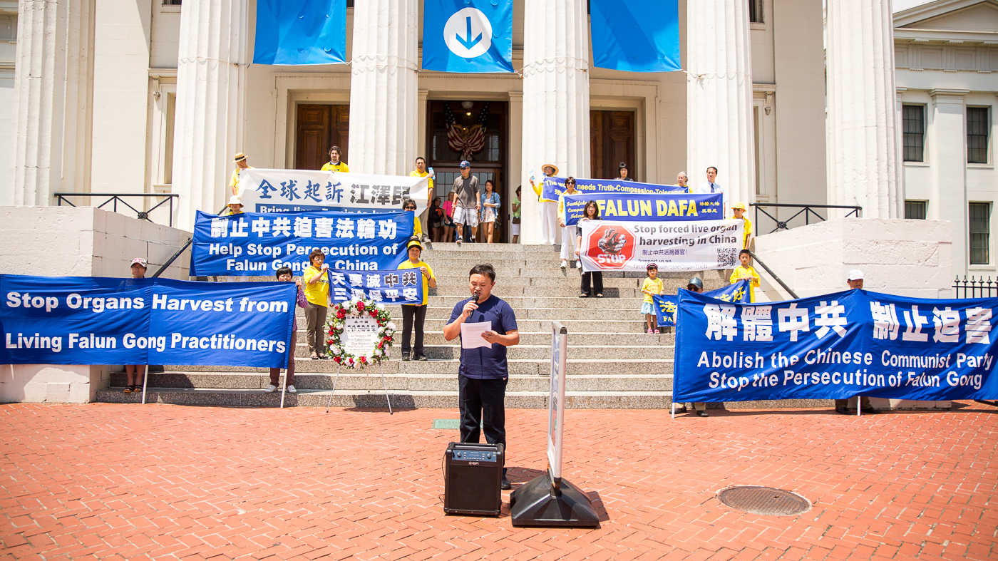 他说:“在一九九九年,中国共产党发动了对国内的法轮功学员的暴力镇压。原本应该保护自己人民的政府,却鼓动社会对那些坚持信仰的无辜民众进行歧视和众多非人性的对待。在社会的各行各业,法轮功学员都被象二等公民一样对待。从洗脑班到非法的屠杀,还有政府故意的打压诽谤,这些学员们遭受了巨大的灾难和对人格的侮辱。最让人担心的是对包括法轮功学员在内的政治犯的活体摘取器官的罪行。”