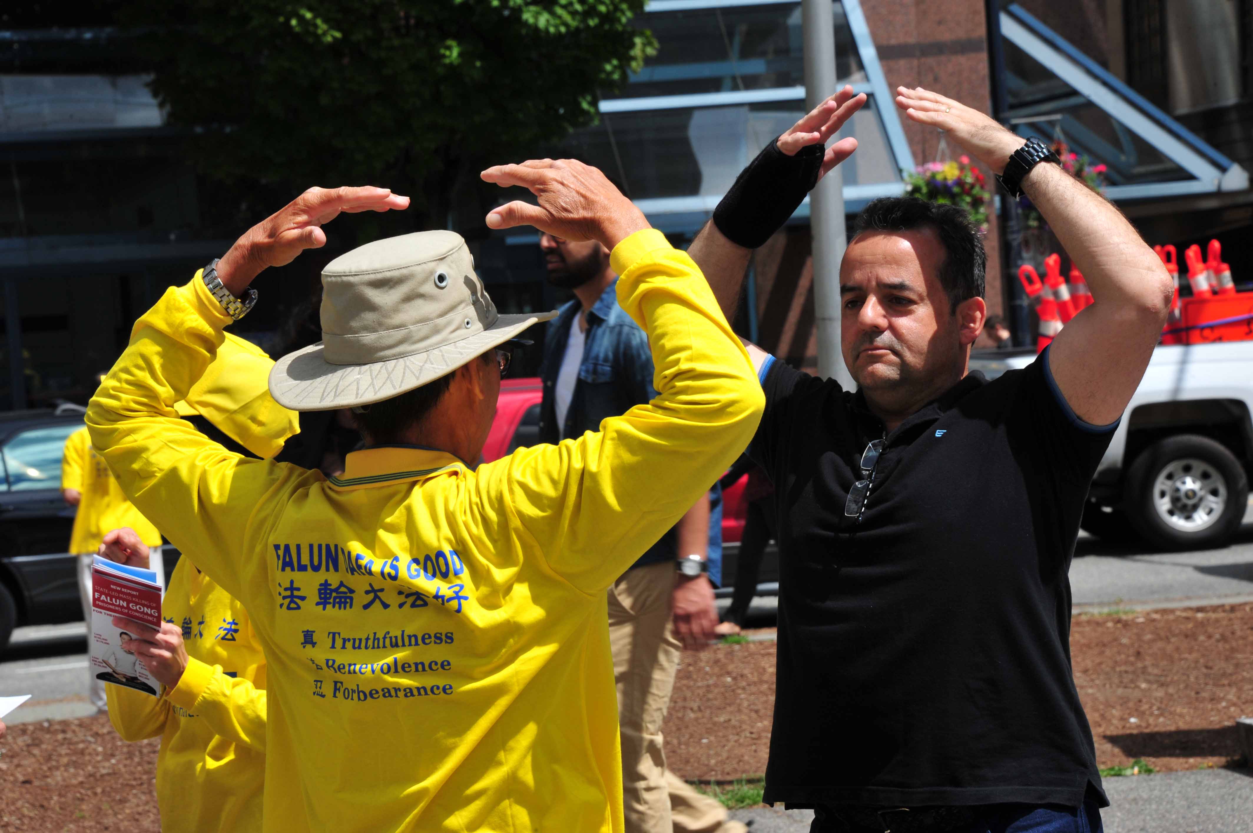 李先生说:感谢法轮大法造就了这么一大批信仰“真善忍”的法轮功学员,他们的存在对社会并没有危害,反而对社会做出贡献,他们的言行举止就是保守了加拿大的传统价值。对社会的道德构建起到积极作用。我要对法轮功学员说,你们做的好。