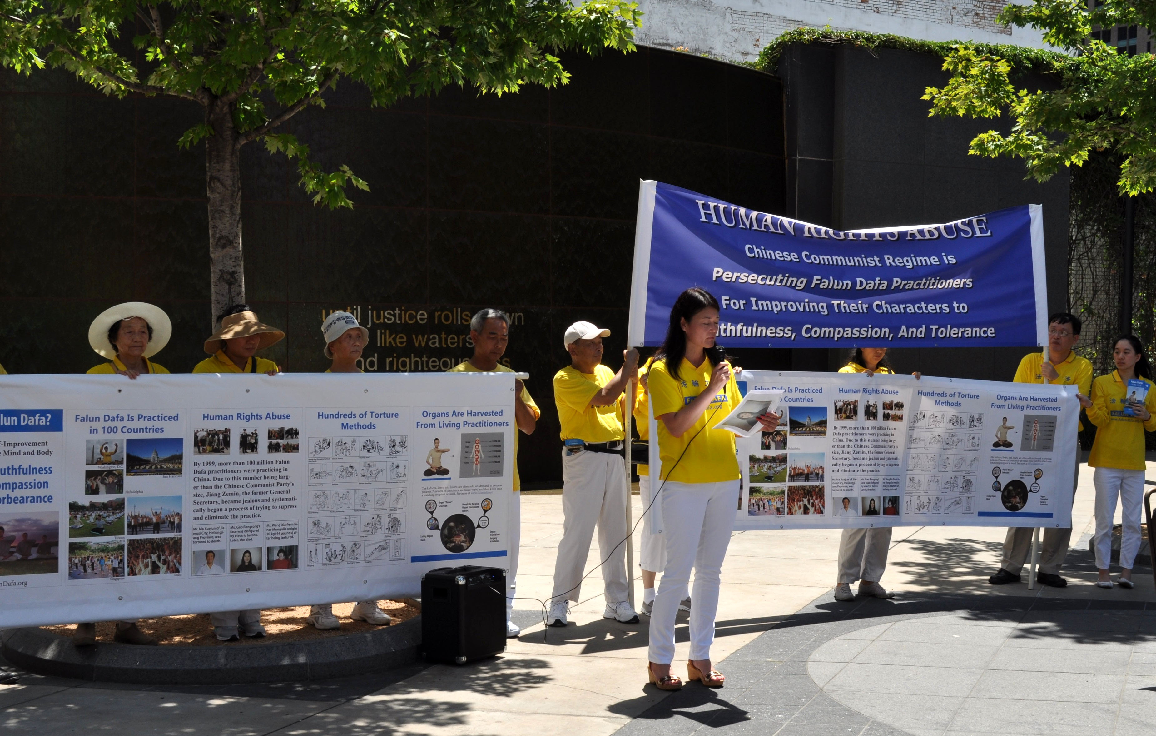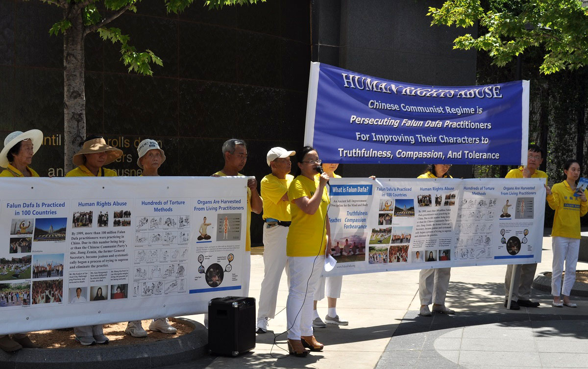 一位女士在听到中共活摘法轮功学员器官时,就立即签下了自己的名字谴责这种暴行。在听完学员的发言后,她更感事情的严重性,说:“你们应该告诉更多的人。我认识很多的人,会帮你们在各个社区里去讲。从现在起,我不买中国制造的产品了。”还有一位男士在听到高蓉蓉被迫害的事后,从杨女士手中拿走照片,看着那张被中共警察电击得面目皆非的脸,他完全被惊呆了。