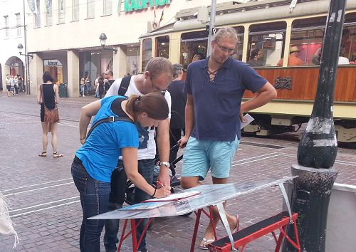 德国弗莱堡法轮功学员反迫害 民众支持(图)
