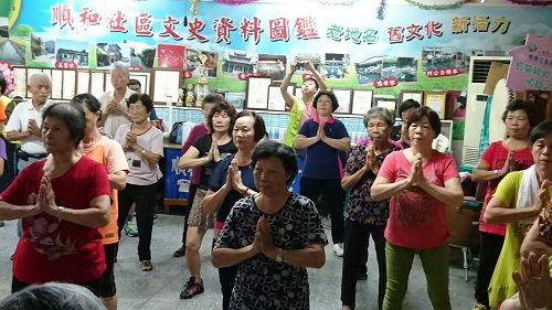 ![]() 图:台湾宜兰县生命线协会“美好人生系列活动”中,社区民众与志工认真学炼法轮功 |