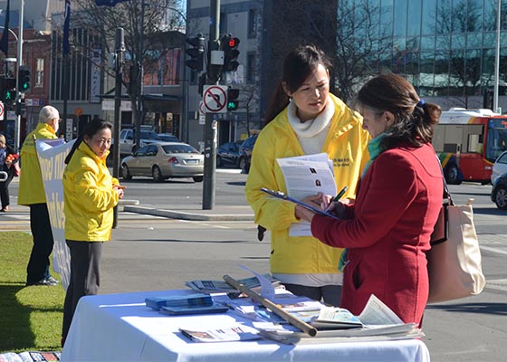 七月十六日,南澳大利亚部分法轮功学员在首府阿德雷得市中心的维多利亚广场传播讲真相,揭露中共对法轮功的残酷迫害。