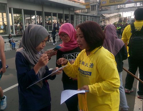图2-5:了解到中共江氏集团迫害法轮功的血腥暴行,雅加达民众纷纷联署举报江泽民。