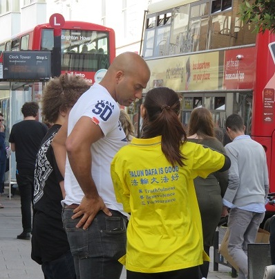 ![]() 图2:法轮功学员在英国布赖顿市中心征集签名,谴责中共迫害 |