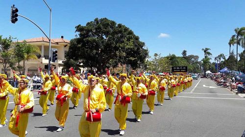 ![]() 图1-3:圣地亚哥法轮功学员参加科罗纳多岛游行,亮丽的色彩、精美的花车分外亮眼。 |