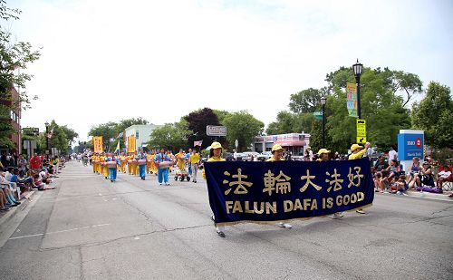 【明慧网二零一六年七月六日】二零一六年七月四日是美国独立二百四十周年日,芝加哥北部的埃文斯顿市举办庆祝游行,有近百支游行队伍和三万观众一起欢庆独立日。芝加哥地区的法轮功学员再度受邀参加,作为游行中唯一的华人团体参加游行,并获得最佳社区花车奖第二名。