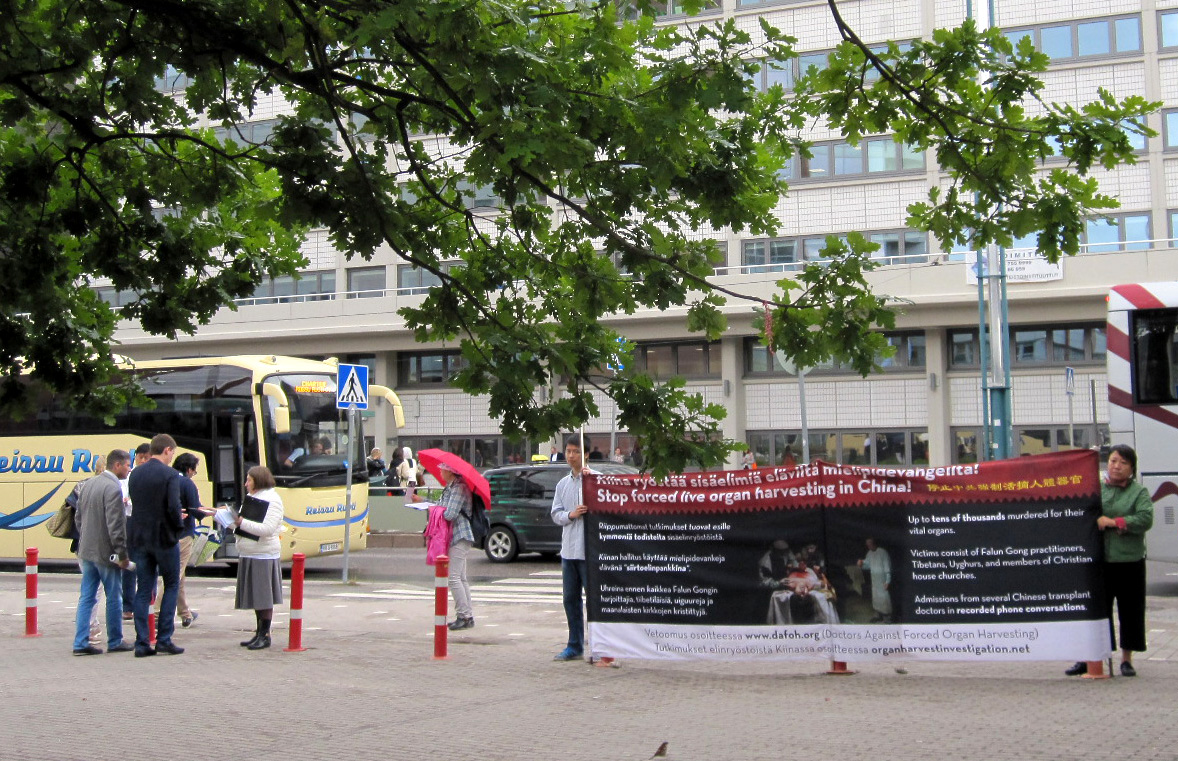 为了让这些专业人士了解中共活摘法轮功学员器官的罪行,部分芬兰法轮功学员在此期间来到会场外举办征签活动。