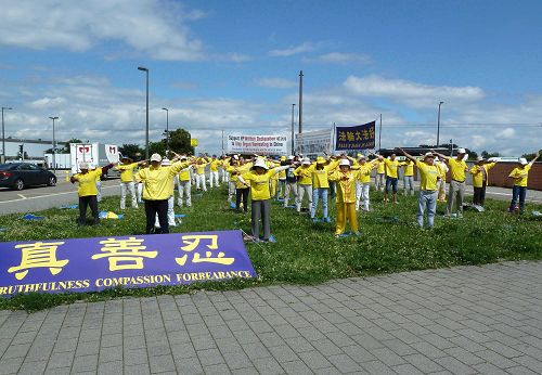 为了让这些专业人士了解中共活摘法轮功学员器官的罪行,部分芬兰法轮功学员在此期间来到会场外举办征签活动。