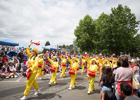 华盛顿州柯克兰国庆游行 法轮功团体获第一名(图)