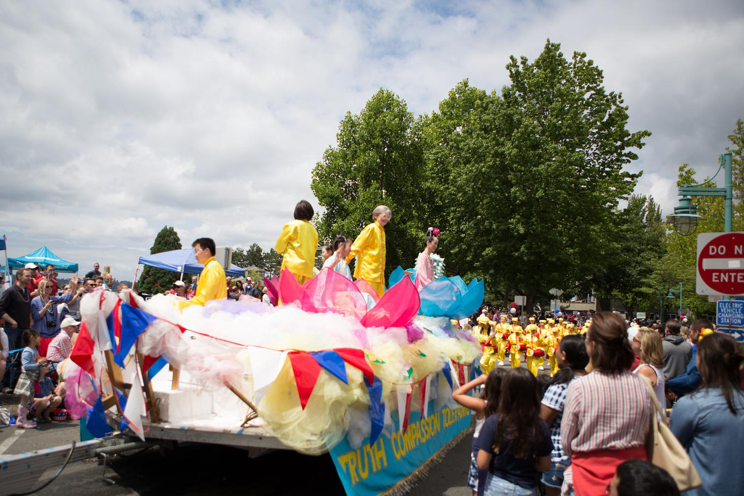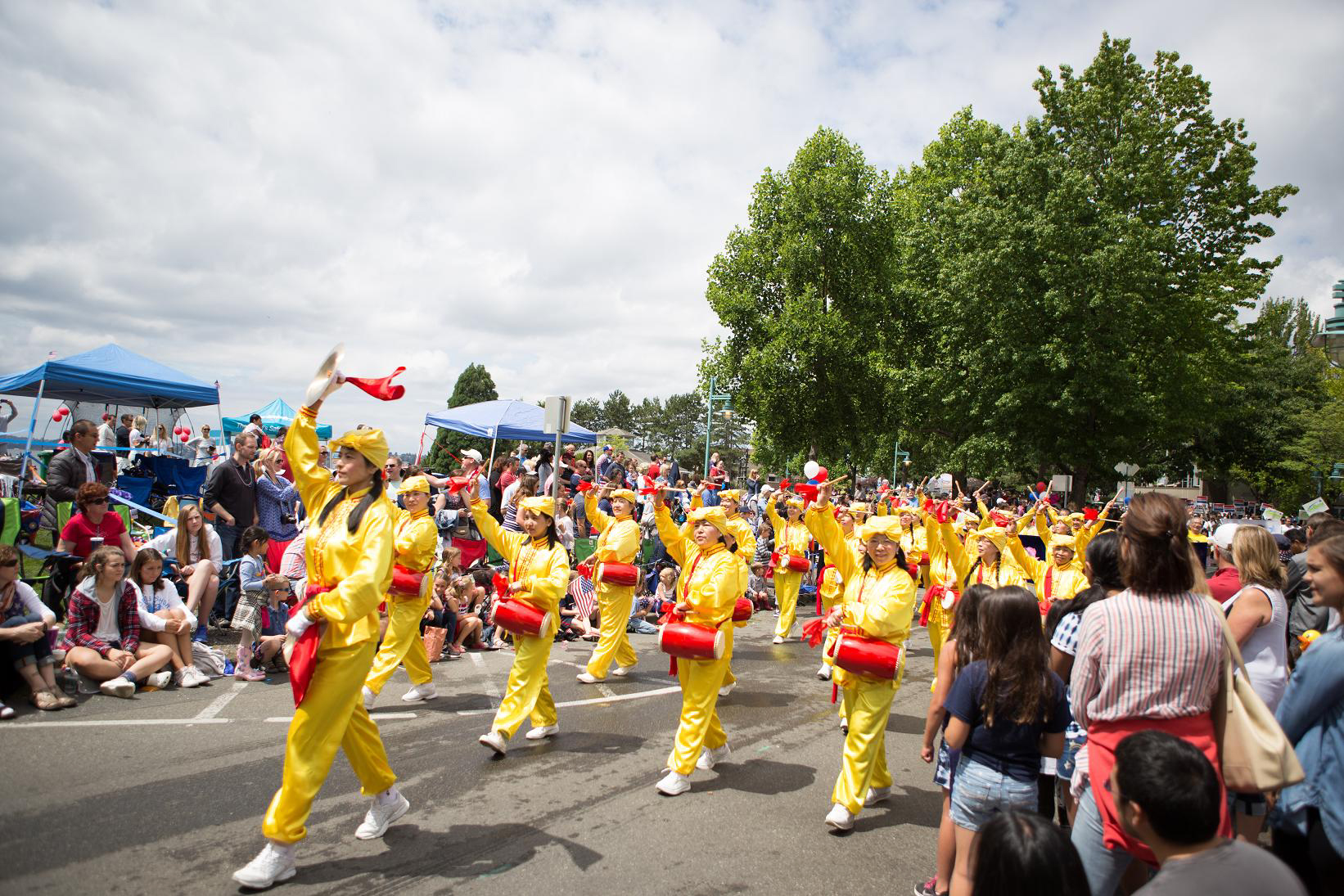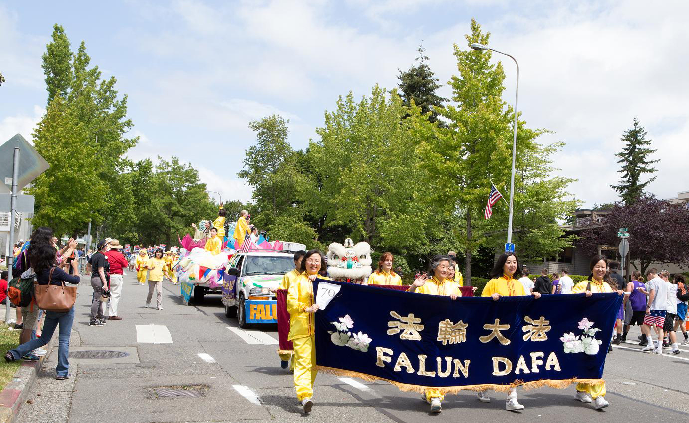 ![]() 图1-4:美国西雅图地区的法轮功学员在七月四日,华盛顿州柯克兰国庆游行中。 |