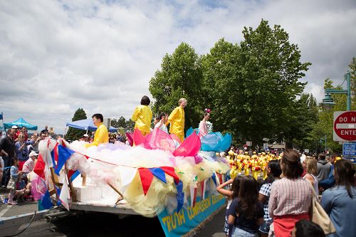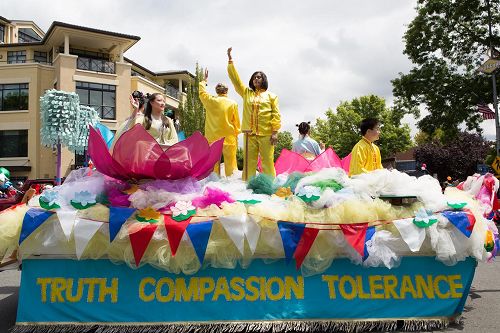 观众中有许多是华人,法轮功队伍经过时,他们踊跃上前拍照、鼓掌、挥手,微笑,点头致意。也有不少观众模仿着学员的炼功动作。一位大约六十岁的白人先生,在听到法轮功学员讲述的活摘真相,尤其是在听到这场迫害是由政府控制操作后感到非常震惊。他说他一定要把这一信息告诉他们一区的议员,请他关注并提供帮助制止迫害。