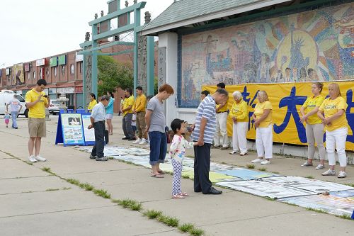 居住在芝加哥北部的Amy和先生、孩子们坐水上巴士(water taxi)到中国城吃点心。她在华埠广场前看到法轮功游行队伍,十分震惊游行中揭露出的中共强摘器官的真相。她说:“(这是)非常重大的事件!而他们如此的和平、宁静,传达着强大有力的信息!很高兴他们能站出来让更多人知道。”