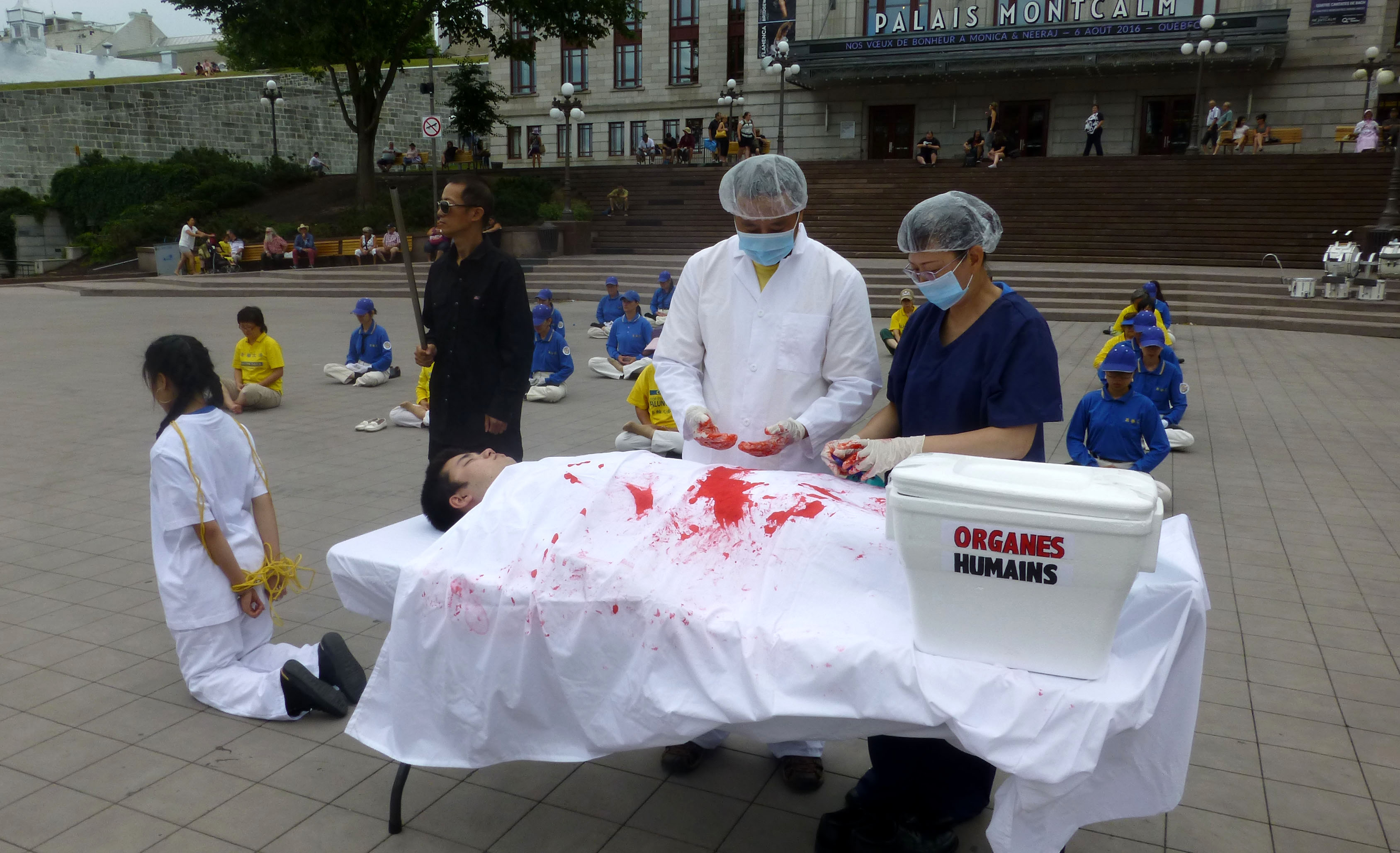 ![]() 图4:以真人模拟,揭露中共活摘法轮功学员器官的罪恶。 |