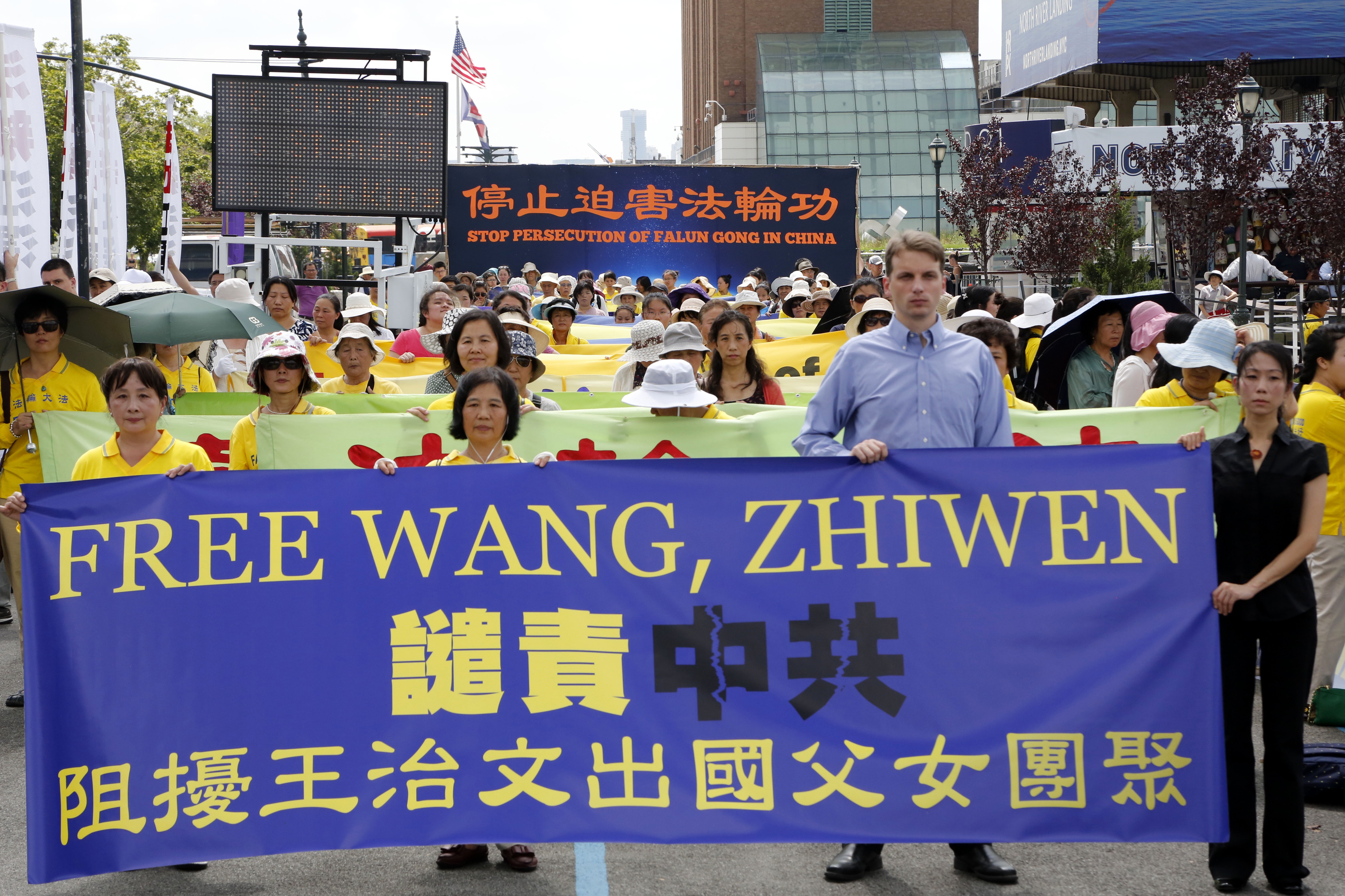 集会现场来了很多曾在中国遭受过迫害的法轮功学员。他们表达了对王治文的支持。