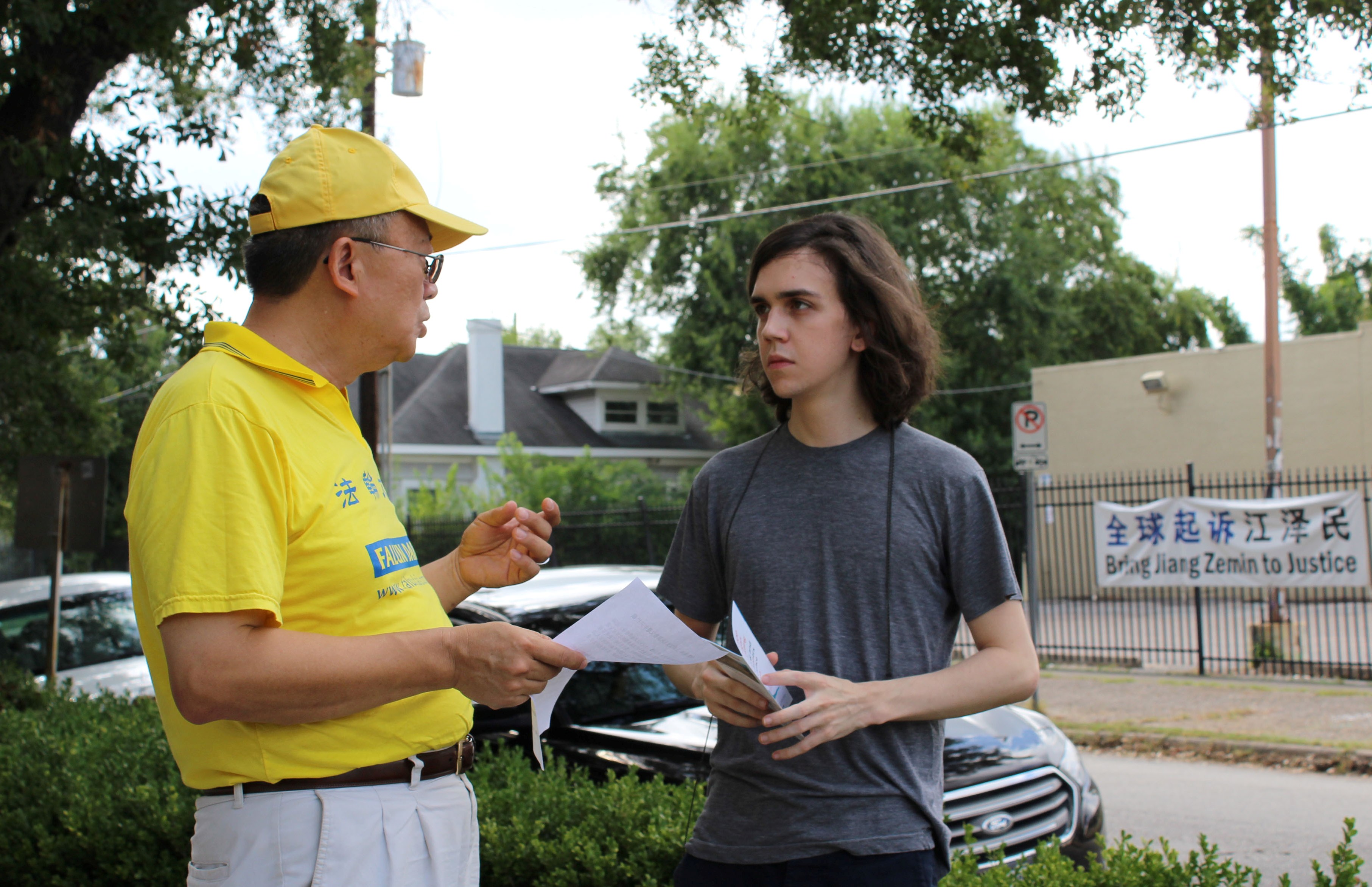 还有一位年轻美国人,看见抗议现场后询问:发生了什么事情?学员张先生向他叙述了王治文因信仰真善忍被非法关押十五年多,并且中共阻挠他来美与亲人团聚等,他听了后感到非常震惊,无法想象因信仰被非法关押十五多年。他表示将向他的朋友介绍王治文的事情。