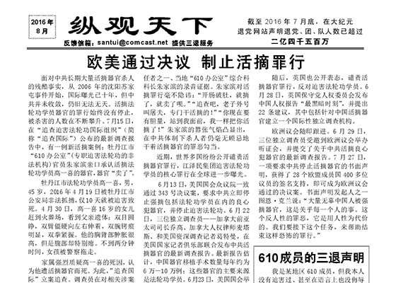 真相传单:纵观天下(2016年8月)
