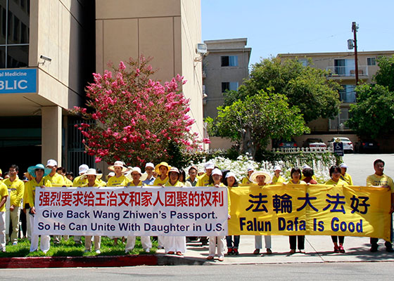 洛杉矶法轮功学员中领馆前声援王治文(图)