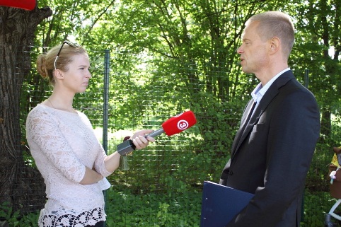 图3:拉脱维亚电视台国际频道TV3的记者采访法轮功学员