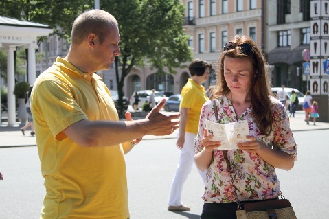 游行队伍吸引了很多市民和游客的注意,人们纷纷走过来要真相资料,了解法轮功。一些中国游客看到法轮功的游行队伍后十分震惊,因为他们很多人都被中共针对法轮功一面倒的抹黑污蔑宣传欺骗,对法轮功怀有误解。看到在拉脱维亚这样的国家都有这么多法轮功修炼者,令他们惊奇和思考,重新认识法轮功。