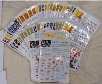 自二零一五年五月法轮功学员控告江泽民以来,河北邢台市法轮功学员在向世人讲真相、劝三退“退党、团、队”的同时,向世人征集支持控告江泽民的签名。至二零一六年八月十四日,已有2077明白真相的世人签名,支持法轮功学员依法控告江泽民。